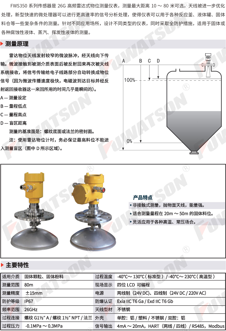 FWS354 26GHz高(gāo)頻雷達物(wù)位計